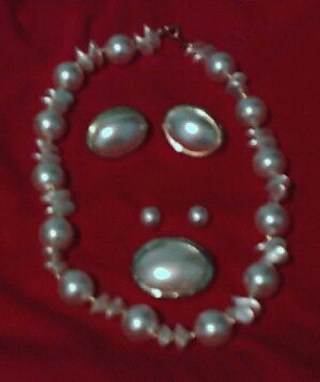 4pc Pearls - Necklace, 2 pair pierced earrings and pin